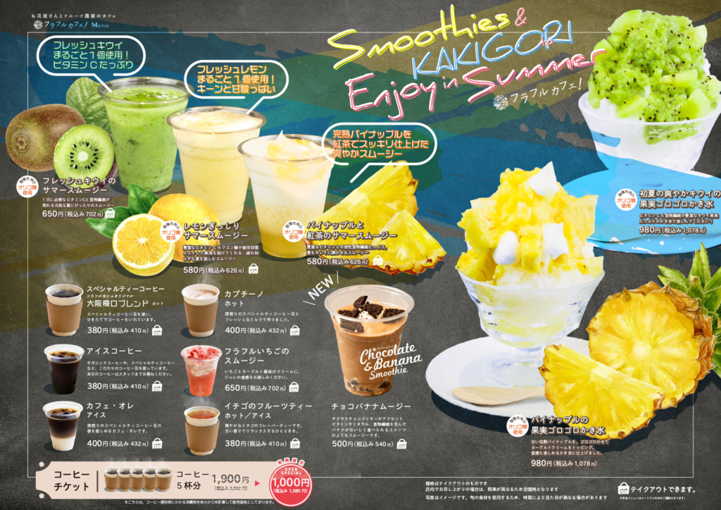 だから低価格であっても新鮮な国産のフルーツを使用出来るし、お花いっぱいのカフェで営業出来ています。